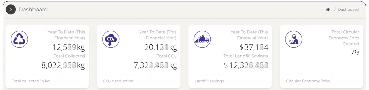 We report on what is collected, when and where and the impacts this has on the environment CO2e, the community in landfill costs saved and jobs generated.
